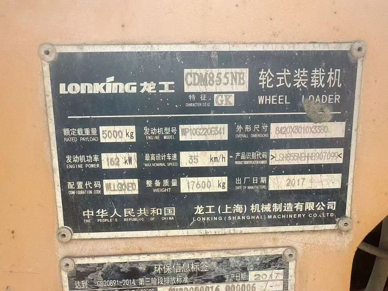 龙工50系装载机2017年出厂