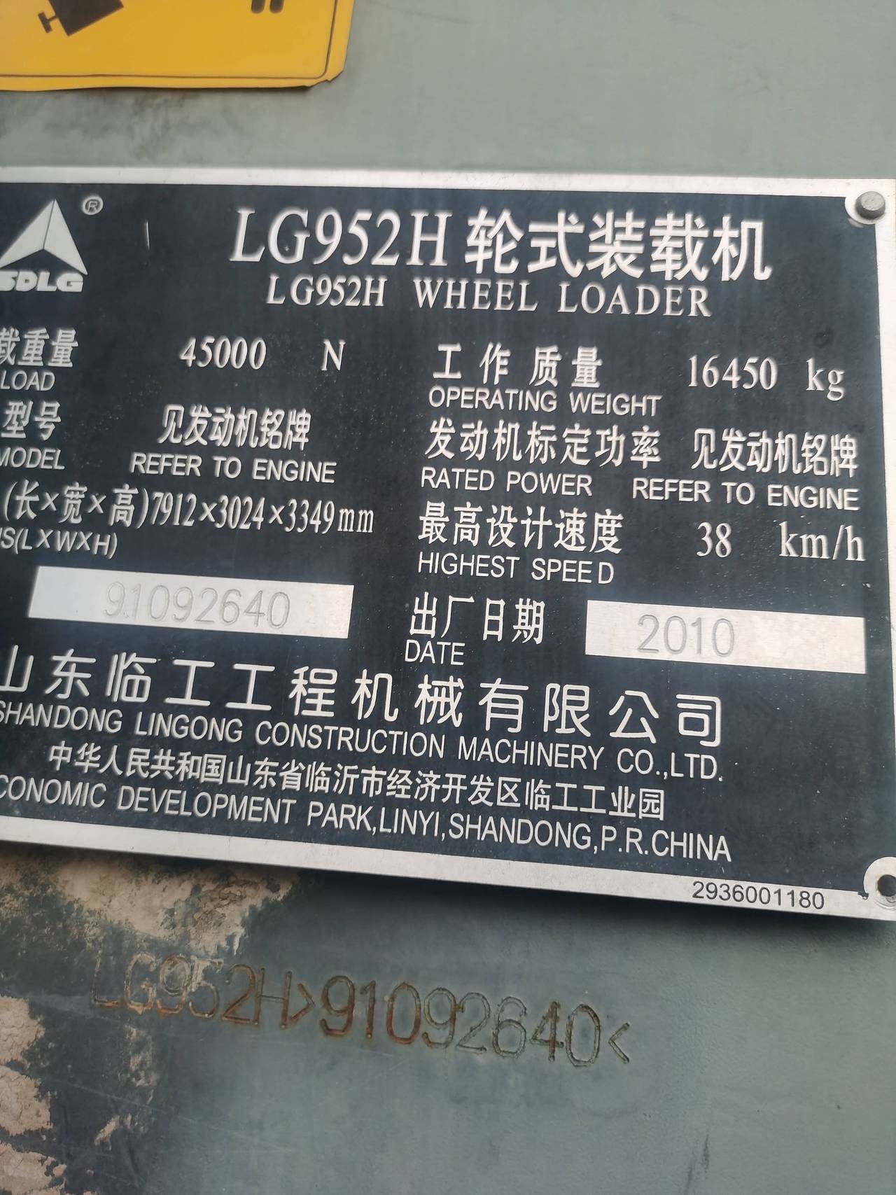 临工952H装载机2010年出厂