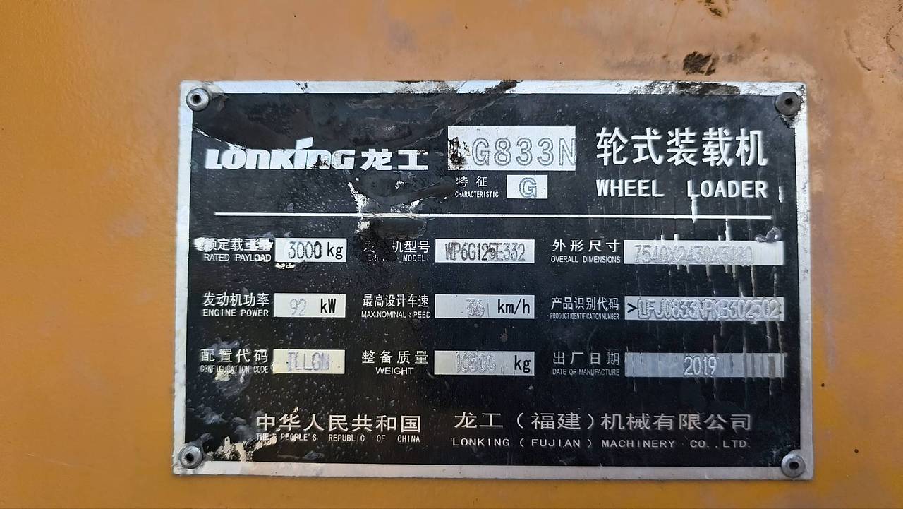 龙工833N装载机2019年出厂